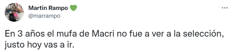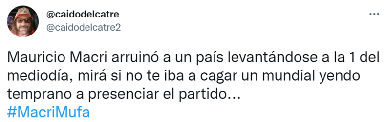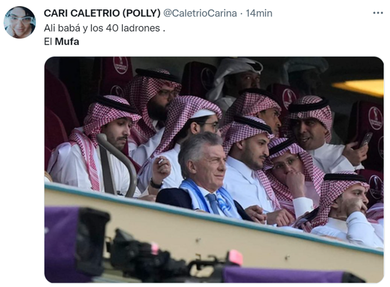 En pleno debut de la Selección argentina ante Arabia Saudita por el Mundial Qatar 2022, la imagen del expresidente Mauricio Macri en las tribunas del estadio Lusail se hizo viral en las redes sociales. De inmediato la palabra "Mufa" se convirtió en tendencia en Twitter.