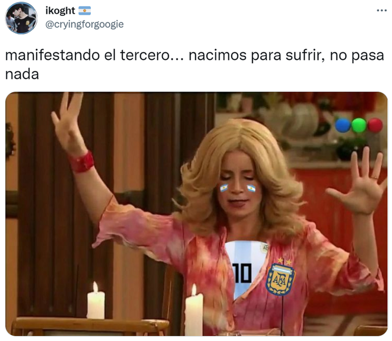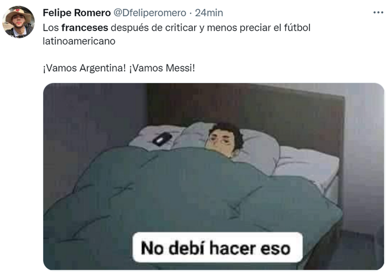 Los hinchas vivieron el minuto a minuto de la final del Mundial Qatar 2022 a través de las redes sociales. Desde la previa del partido de la Selección argentina ante Francia, los memes reflejaron la ilusión, la ansiedad y el fanatismo de todos los usuarios de Twitter.
