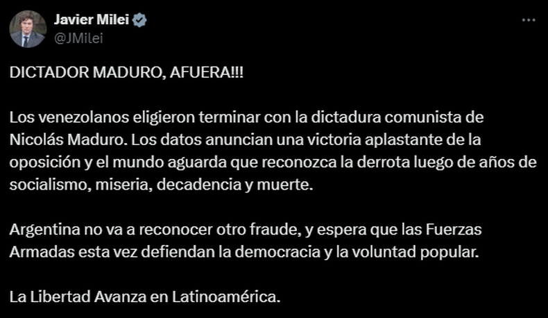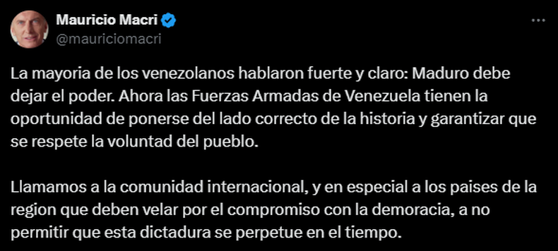 "No pudieron con las sanciones, no pudieron con agresiones, no pudieron con las amenazas, no pudieron ahora y no podrán jamas con la dignidad del pueblo de Venezuela", expresó quien en enero asumirá su tercer mandato.