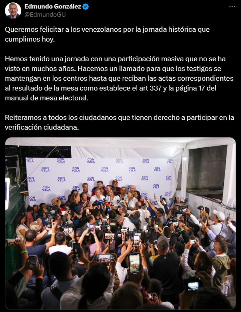 Tras conocer la victoria electoral, el presidente Nicolás Maduro dio un discurso en un escenario montado frente al Palacio de Miraflores donde ante miles de venezolanos dijo que fue el "triunfo de la independencia nacional y de la dignidad del pueblo".