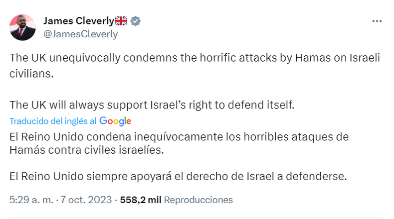 A través de sus cuentas oficiales en las redes, Cristina señaló: "Hoy por la mañana las imágenes de televisión nos devolvían violencia, muerte y desolación en territorio de Israel. Nuestra solidaridad incondicional con todas las víctimas y sus familiares".