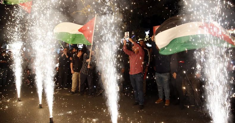 Cientos de ciudadanos se reunieron para festejar los sucesos de las últimas horas. Las autoridades también manifestaron su apoyo al ataque de Hamás.