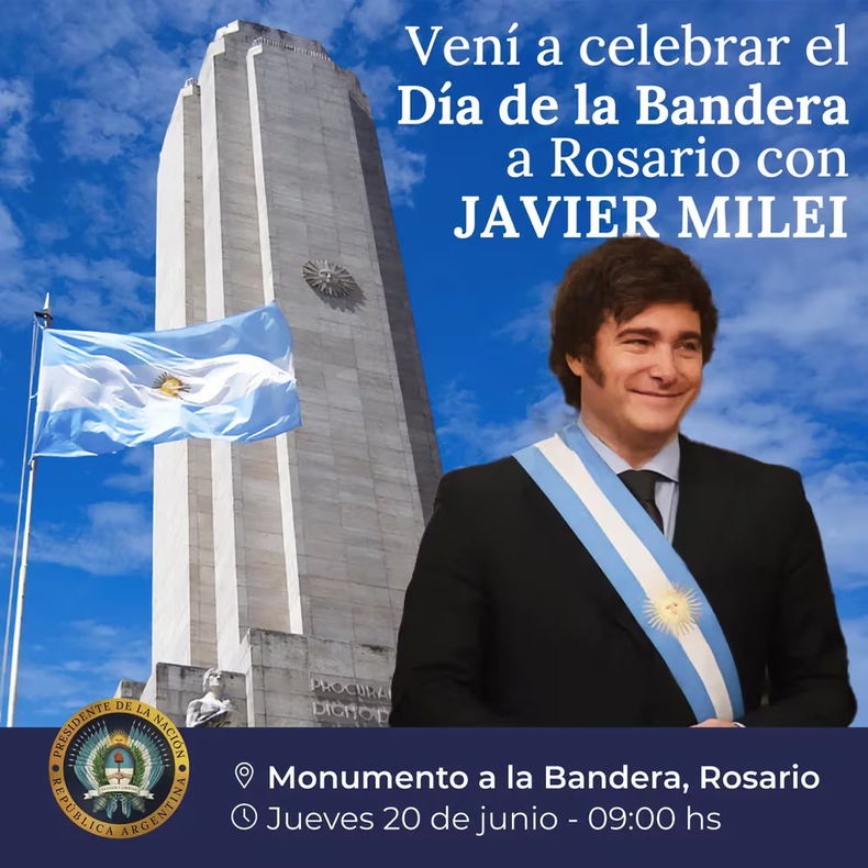 "Quiero aprovechar este día, con la bandera flameando en el cielo, avanzada ya la sanción de la Ley Bases y el paquete fiscal para convocar a todas las autoridades políticas, los gobernadores de las provincias argentinas, los dirigentes de los principales partidos, los expresidentes de la Nación, los miembros de la Corte Suprema de Justicia, los empresarios, los trabajadores y a toda la ciudadanía argentina a que nos encontremos la noche del 9 de julio en Tucumán para firmar el Pacto de Mayo y finalmente empecemos juntos a dar vuelta la página de nuestra historia", invitó el mandatario.