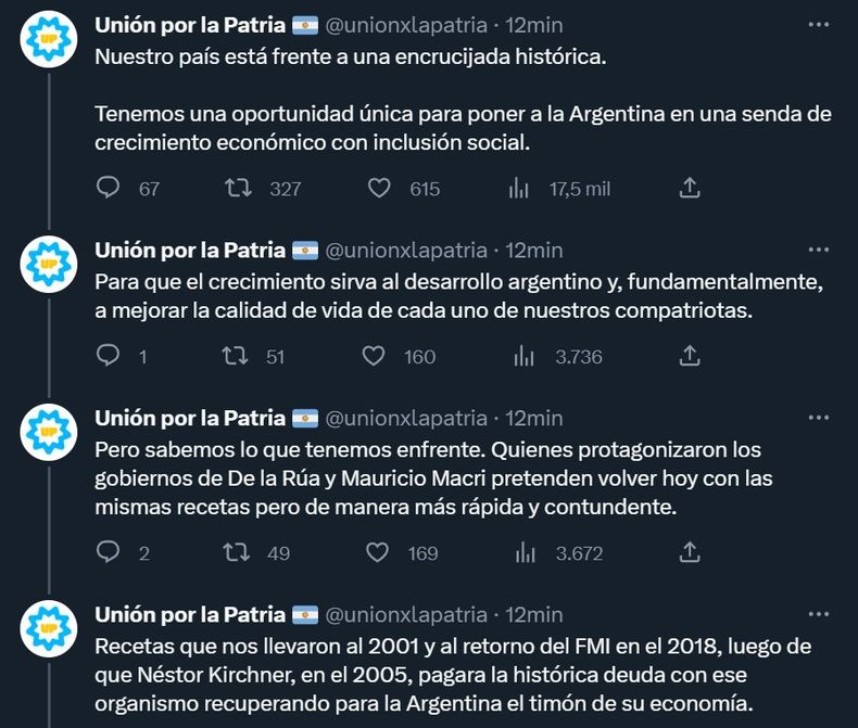 El oficialismo presentó este miércoles, fecha límite para la presentación de alianzas para las próximas elecciones presidenciales según el calendario establecido por la Cámara Nacional Electoral, el nuevo nombre con el que la coalición encabezada por el Partido Justicialista competirá en la contienda electoral: Unión por la Patria.