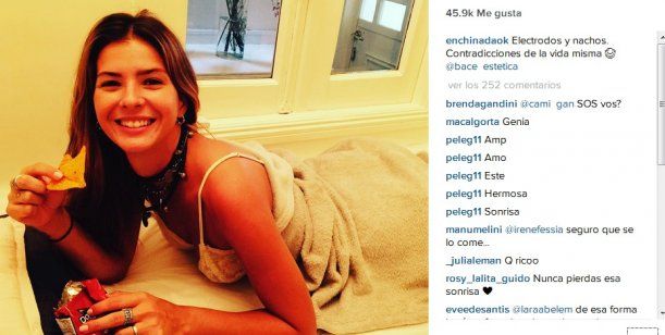 La China Suárez es dueña de uno de los cuerpos más deseados del mundo del espectáculo, e incluso es la imagen de reconocidas marcas de trajes de baño y otras marcas de ropa que representa. Y si bien ella siempre admitió que come de todo, claro que detrás de su delgadez hay una ayudita de alguna que otra sesión de belleza y gimnasia. Lo raro es que, en plena sesión de electrodos, Suárez también aprovechó para... ¡comer nachos! "Electrodos y nachos, contradicción de la vida misma", escribió junto a la imagen del momento.