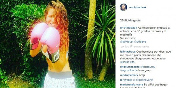 Pero eso no es todo: en otra foto se mostró lista para entrenar boxeo. "¿Adivinen quien empezó a entrenar con 50 grados de calor y al mediodía? Sin excusas", expresó con guantes incluidos.