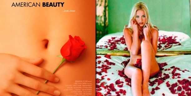 Belleza Americana, escrita por Alan Ball y dirigida por Sam Mendes, arrasó en los premios Oscar y puso de moda la temática de las falsas apariencias. En la película Lester Burnham (Kevin Spacey) se enamora de Angela Hayes, la mejor amiga de su hija, interpretada por Mena Suvari. El afiche promocional la evocaba con sutileza. Sin embargo, la protagonista del póster no es Suvari.