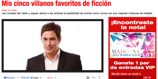 RatingCero.com los invitaba a buscar un banner con las instrucciones para participar por las dos entradas Campo VIP para ver a Madonna entre las noticias del portal.