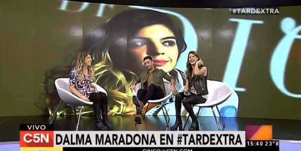 Dalma Maradona estuvo en el piso de C5N como invitada al primer programa de Tarde Xtra, con Diego Poggi y Agustina Casanova, y habló de todo: sus ganas de estar en el Bailando 2016, de casarse con Andrés, su pareja, y su increíble reacción cuando le tocó "matchear" a Rocío Oliva y Matías Morla.