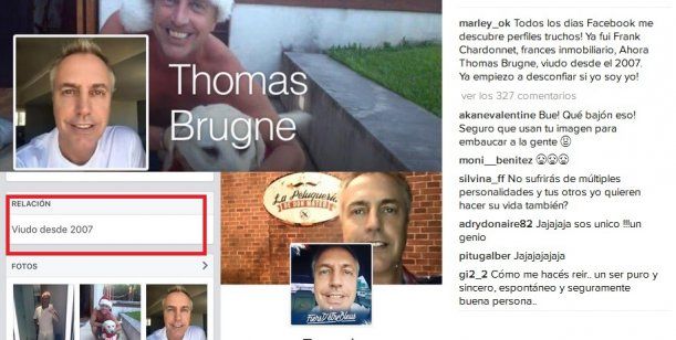 "¡Todos los días Facebook me descubre perfiles truchos! Ya fui Frank Chardonnet, un francés inmobiliario. Ahora, Thomas Brugne, viudo desde el 2007. ¡Ya empiezo a desconfiar si yo soy yo!", bromeó Marley.