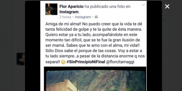 Lo curioso es que desde el mediodía del domingo había comenzado a circular en las redes sociales una captura de un mensaje que una amiga de Maggi le escribió en Instagram expresando su pena por el difícil momento.