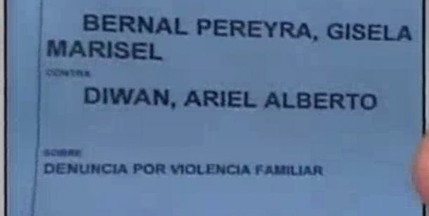 Como era de esperar, el contraataque de Bernal llegó. En Intrusos mostraron la carátula de la causa que ya le inició a Diwan: "Bernal Pereyra, Gisela Marisel C/ Diwan, Ariel Alberto S/ Denuncia por violencia familiar".