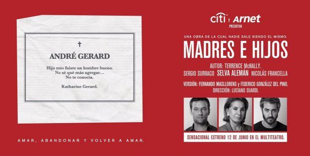 El próximo viernes 12 de junio se estrenará "Madres e hijos" en el Multiteatro, espectáculo protagonizado por Selva Alemán, quien será acompañada por Nicolás Francella y Sergio Surraco.