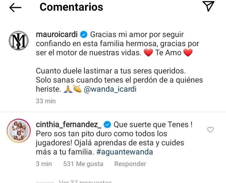 Mauro Icardi confirmó su reconciliación con Wanda Nara y le pidió disculpas públicas en un posteo en Instagram que se llenó de comentarios y likes. Entre ellos, estuvo el de Cinthia Fernández, una de las panelistas que más bronca destiló contra la China Suárez y el jugador.