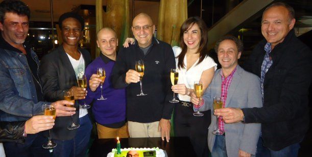 El Puma Goity, Laura Oliva, Carlos Defeo, Fabián Minelli y Mauricio González celebran el éxito de "¿Quién es el Señor Schimtt?", la obra que protagonizan en la Sala Pablo Picasso de El Paseo La Plaza.