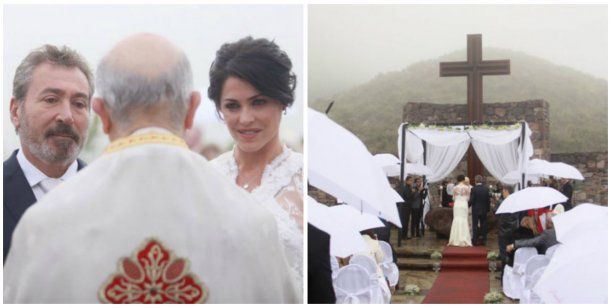La ceremonia religiosa se llevó a cabo en una capilla, al aire libre y el padre Ignacio Saade, que los casó, bromeó sobre el apuro por el mal tiempo. "Nunca hice un casamiento tan exprés", dijo al final de la celebración, que estuvo musicalizada por el cuarteto de cuerdas Ludwig. Sobre el final los invitados tiraron globos blancos bajo la consigna de pedir tres deseos. Para el baile tocó el grupo La Kumbia.