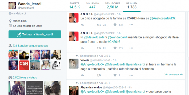 En las redes sociales comenzó a sonar el nombre de Ivana Icardi y Wanda no se quedó afuera de la polémica. Si bien no escribió nada en Twitter, la rubia marcó como favoritos picantes mensajes. "Si fuera mi hermana la cag... a trompadas, patética extorsionando al hermano", decía una seguidora. Otro usuario agregó: "Tampoco porque tenga plata la tiene que mantener. Bozal legal y listo por turra. Qué bajón que tu hermana te extorsione".