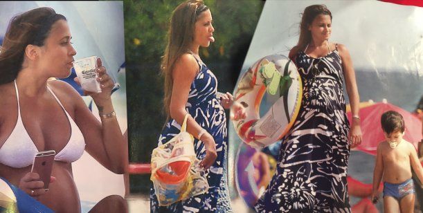 Según informa la publicación, el nuevo integrante de la familia se llamará Benjamín y Antonella tiene fecha de parto para los últimos días de octubre o los primeros de noviembre. En las fotos se puede ver a Roccuzzo radiante con su panza de seis meses y sin descuidar al pequeño Thiago, que juega sobre la arena.