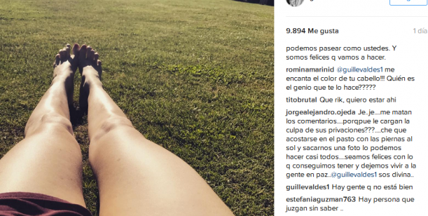 En su lugar, Valdés posteó una foto de sus piernas bajo la leyenda "chau maravilloso fin de semana" y aprovechó para explicar por qué había sacado la de Lorenzo.