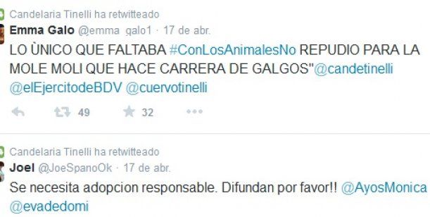Inesperada polémica entre Candelaria Tinelli y la Mole Moli. En los últimos días, Candelaria Tinelli hizo algunos retuits a personas que acusaban a la Mole Moli de maltratar galgos.