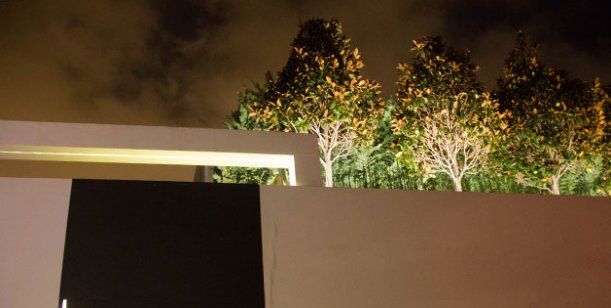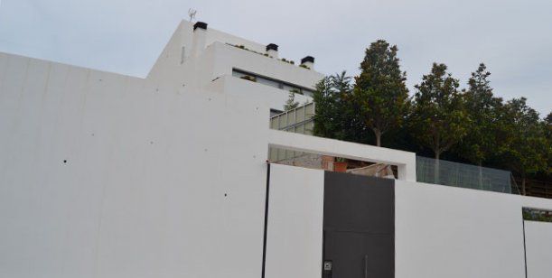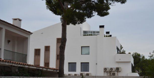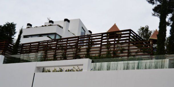 La constructora Luca-Tana SL estuvo a cargo de la renovación de la fachada y, según los vecinos, ahora es de color blanco y con rayos de luces que se aprecian por la noche y decoran los altos muros y la imponente puerta negra.