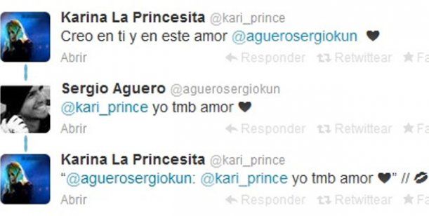 Si bien el propio futbolista dejó en claro que su cuenta de Twitter no la usará para "cuestiones personales", más enamorado que nunca, hizo trampa y le contestó algunos románticos mensajes de amor que envió Karina en la red social.