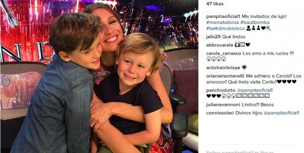 "¡Mis invitados de lujo! Mamá babosa, Bauti bomba, Beltrán rubio loco", escribió la modelo junto a la postal familiar que se sacaron en el estrado del jurado.