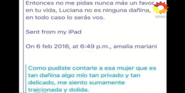 A lo que ella le respondió: "Cómo pudiste contarle a esa mujer tan dañina algo mío tan privado y tan delicado, me siento sumamente traicionada y dolida".