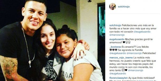 "Felicitaciones. Uno más en la familia, va a ser otro que más voy a amar con todo mi corazón", escribió la hermana del futbolista en su cuenta de Instagram junto a una foto de la pareja y en la cual Rojo le está tocando la panza a su mujer, que no puede ocultar la felicidad en su cara.