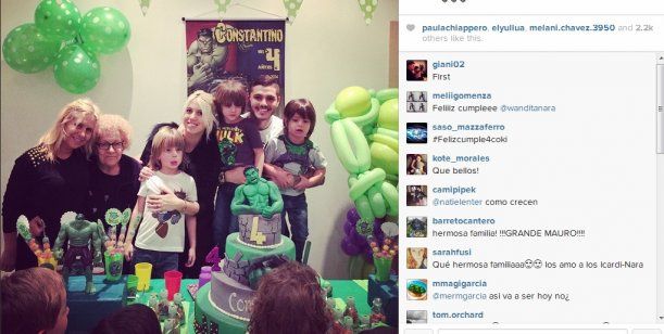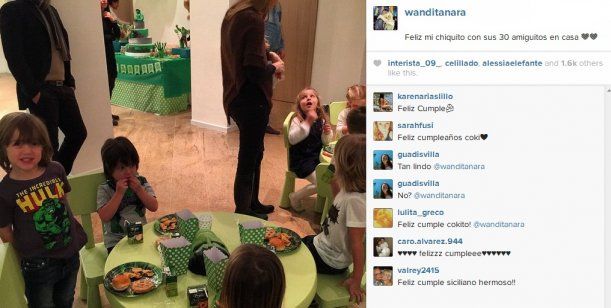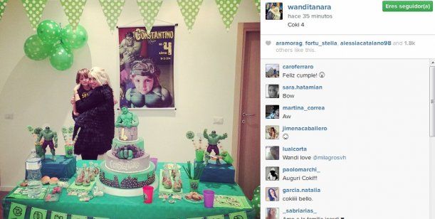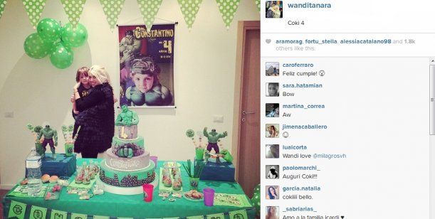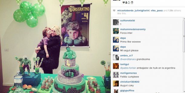 Este martes, la modelo celebró los cuatro años de su segundo hijo. El festejo tuvo como temática todo sobre el personaje "Hulk", al cual asistieron 30 amiguitos y también la familia de ella. Su madre, su abuela, sus dos hermanos y su marido, Mauro Icardi.