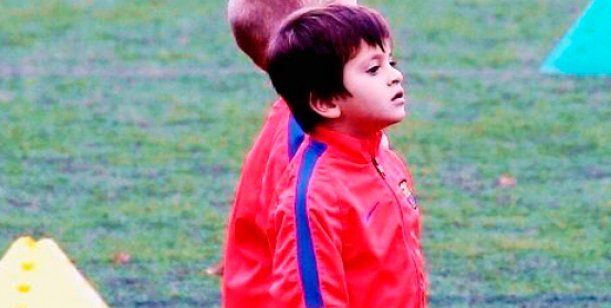 Thiago, el hijo de Lionel Messi, comenzó las clases de fútbol en una escuela que el Barcelona organizó para los descendientes de los jugadores.