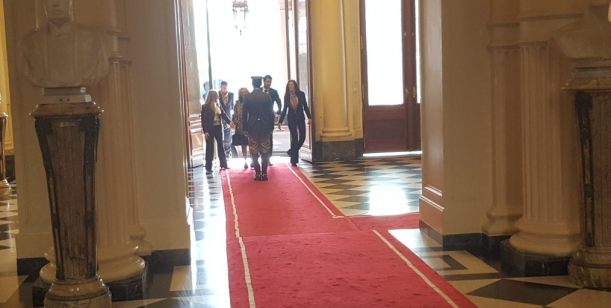 Pasadas las 14.30, la diva salió de la Casa Rosada y detalló frente a la prensa cómo estuvo el almuerzo. "Salió todo espléndido, fantástico muy lindo. Éramos cinco. Fue todo muy agradable y me quedé con ganas de volver", aseguró Mirtha.