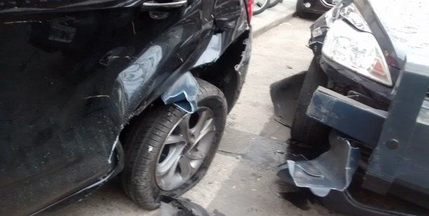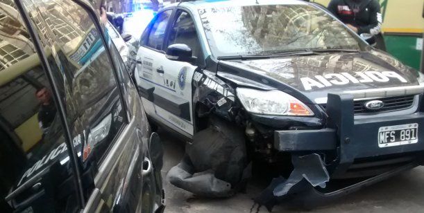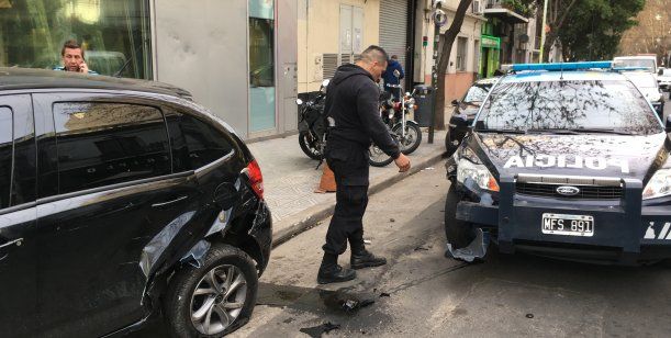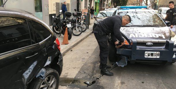 Un policía realizó una mala maniobra con su patrullero y se llevó por delante el auto de un periodista de Radio 10, que se encontraba estacionado en la calle FitzRoy y Costa Rica, y de milagro ningún peatón resultó herido.