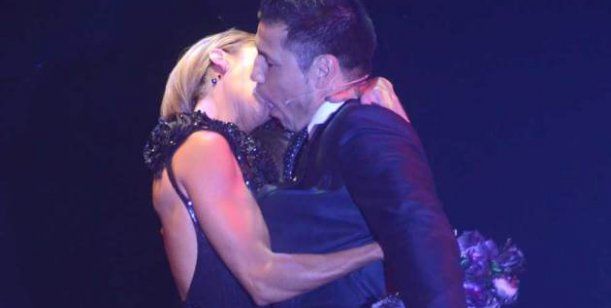 La actriz y el boxeador alimentaron los rumores de que habrían comenzaron una relación amorosa al darse un apasionado beso sobre el escenario de "Family Disfuncional".