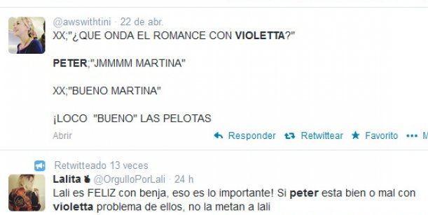 Por el lado de Violetta y Peter Lanzani, las versiones de crisis aparecieron a través de los comentarios de sus fans, que de un día para otro empezaron a referirse a que la pareja estaría lejos de pasar por un buen momento, estando al borde de la separación.