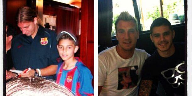 Icardi compartió en su cuenta de Twitter una foto de él cuando era chico y se sacó una foto con uno de sus ídolos de Barcelona. Unos años después, ya como amigos, el futbolista le dedicó unas tiernas palabras.
