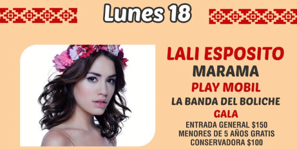 Según publica el sitio oficial del Festival, esa misma noche también se presentarán Marama, Play Mobil, La banda del boliche y Gala, con una entrada general de 150 pesos.