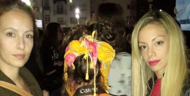 El miércoles, si bien no publicó fotos en su cuenta de Twitter, circularon imágenes de ella durante la manifestación abrazando a una mujer y posando con otra persona con un cartel contra la cultura patriarcal.