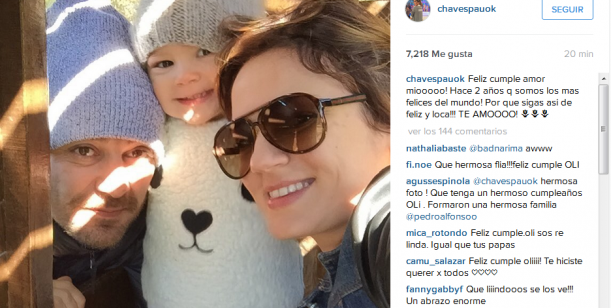 "¡Feliz cumple amor miooooo! ¡Hace 2 años que somos los más felices del mundo! ¡Por que sigas así de feliz y loca!!! TE AMOOOO! ", escribió Paula en Instagram, con una foto de los tres.