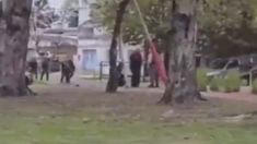 El hombre, de 88 años, se quejó del ruido y arrojó un tacho de pintura sobre un auto en el que iban a ir un grupo de fanáticos hasta el estadio. “No me toques”, intentó resistirse cuando llegó la Policía.